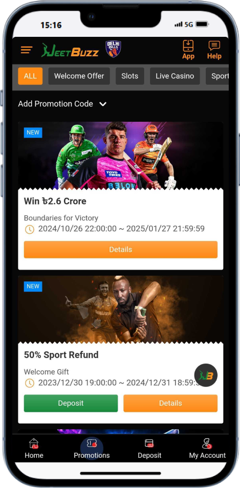 A diverse assortment of bonus offers has been added to the Jeetbuzz app. Bangladeshi users can participate in various casino and sportsbook promos as well as benefit from numerous temporary and permanent rewards like cashback, rebate bonuses, and others: